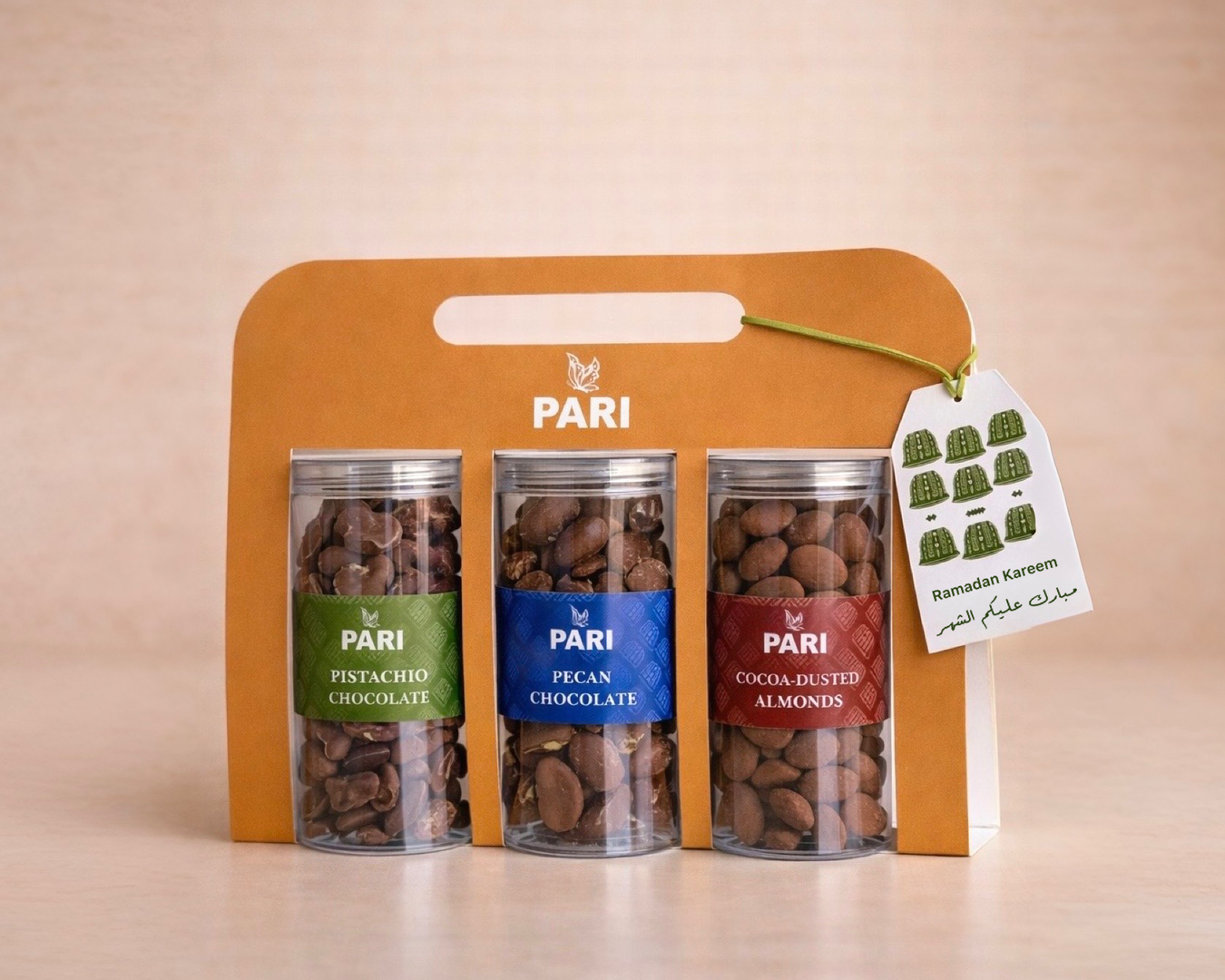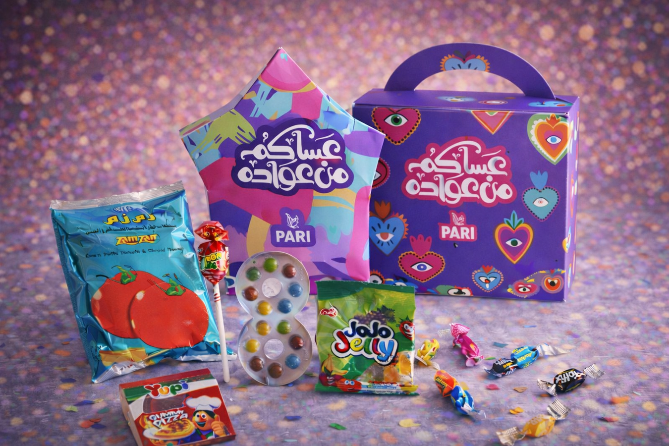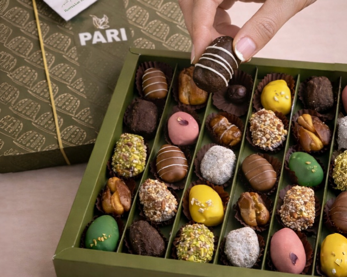 Tray filled with 1 kg of assorted chocolates and eid sign. Mix flavors , wrapping color may vary, gold silver and clear cellophane. flavors: nuts +...