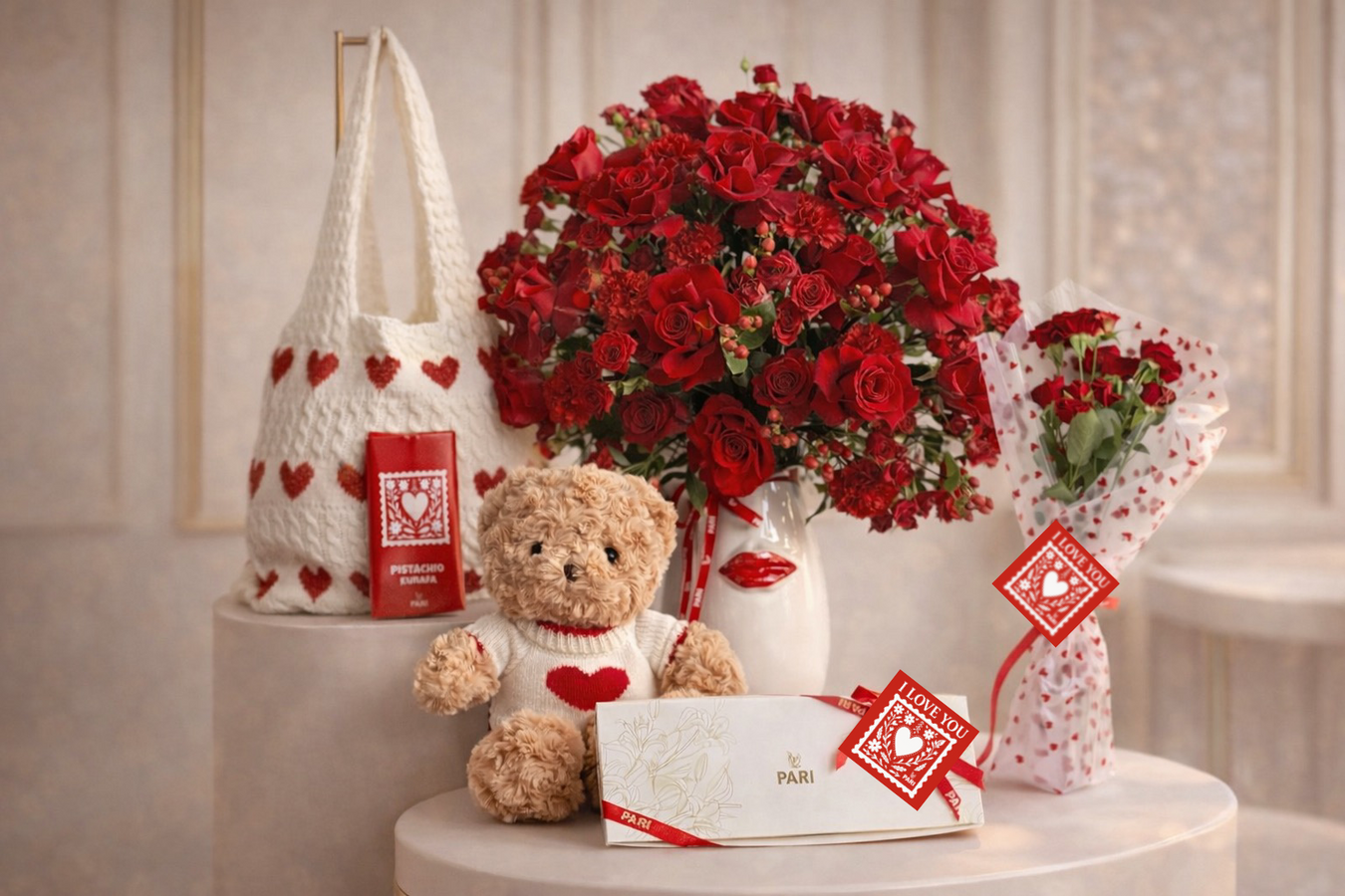 Signature round tray filled with 1 kg of assorted chocolates. chocolate flavors and wrapping color may vary. Approximate size : 30cm