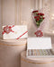 1 stem of spray rose wrapped in paper along with our rectangle box filled with 32 pieces of crunch chocolate.