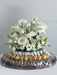 Fresh flower arrangement consisting of roses, spray roses, astromelia and gerbera on a stripped white plastic vase. Along with a bamboo wooden oval tray topped with 2 kgs of assorted fine chocolates with fresh flowers.
